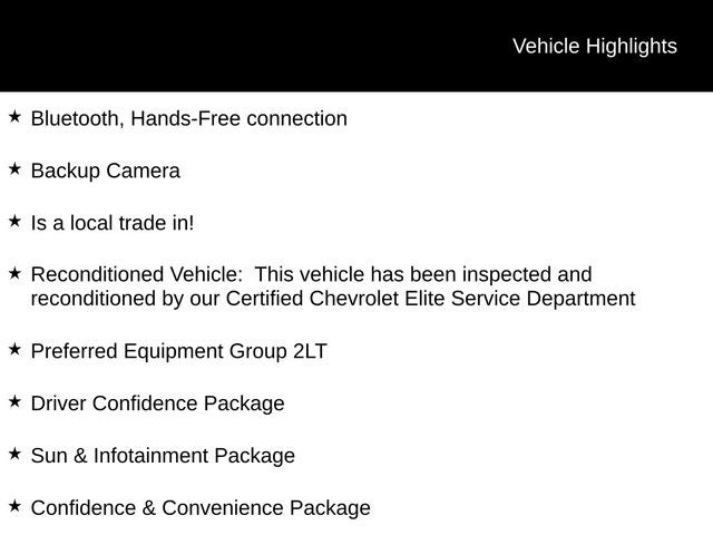 - Reconditioned Vehicle: This vehicle has been inspected and reconditioned by our Certified Chevrolet Elite Service Department