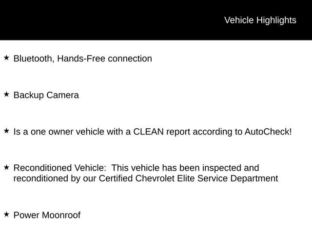 - Reconditioned Vehicle: This vehicle has been inspected and reconditioned by our Certified Chevrolet Elite Service Department
