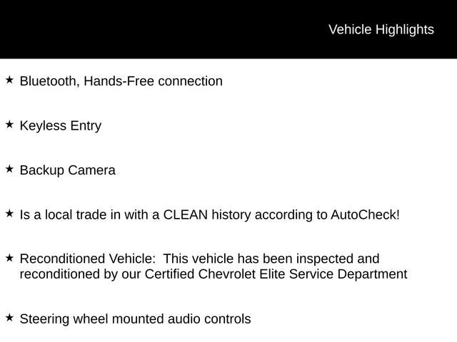 - Reconditioned Vehicle: This vehicle has been inspected and reconditioned by our Certified Chevrolet Elite Service Department