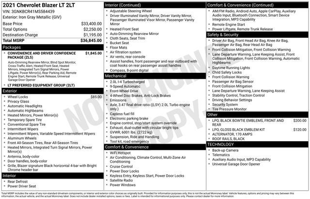 Whether you're looking for a versatile family hauler, a capable adventure companion, or a stylish daily driver, this 2021 Chevrolet Blazer LT is an exceptional choice. Schedule a test drive today and discover the exceptional value and uncompromising quality that this Blazer has to offer.