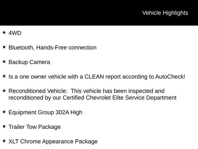 - Reconditioned Vehicle: This vehicle has been inspected and reconditioned by our Certified Chevrolet Elite Service Department