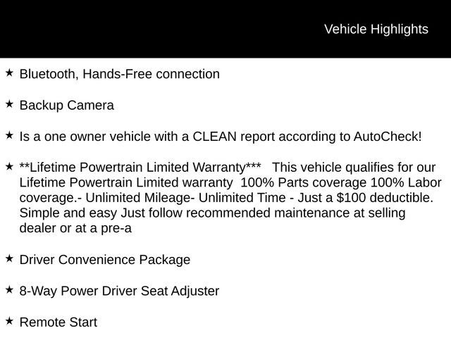 - **Lifetime Powertrain Limited Warranty*** This vehicle qualifies for our Lifetime Powertrain Limited warranty 100% Parts coverage 100% Labor coverage.- Unlimited Mileage- Unlimited Time - Just a $100 deductible. Simple and easy Just follow recommended maintenance at selling dealer or at a pre-a