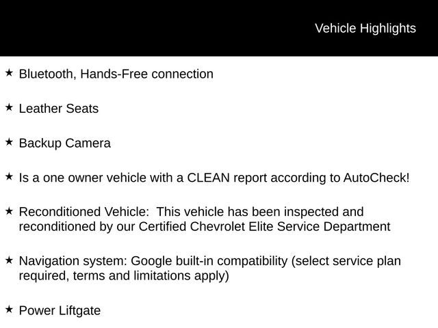 - Reconditioned Vehicle: This vehicle has been inspected and reconditioned by our Certified Chevrolet Elite Service Department