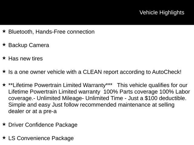 - **Lifetime Powertrain Limited Warranty*** This vehicle qualifies for our Lifetime Powertrain Limited warranty 100% Parts coverage 100% Labor coverage.- Unlimited Mileage- Unlimited Time - Just a $100 deductible. Simple and easy Just follow recommended maintenance at selling dealer or at a pre-a