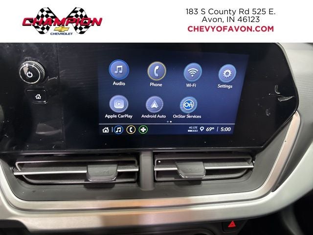 - Audio system, Chevrolet Infotainment 3 system 8" diagonal color touchscreen, AM/FM stereo, Bluetooth® audio streaming for 2 active devices, voice command pass-through to phone, Wireless Apple CarPlay and Wireless Android Auto compatibility