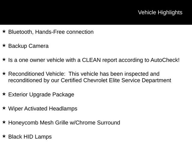- Reconditioned Vehicle: This vehicle has been inspected and reconditioned by our Certified Chevrolet Elite Service Department